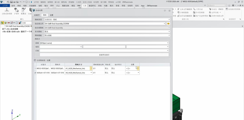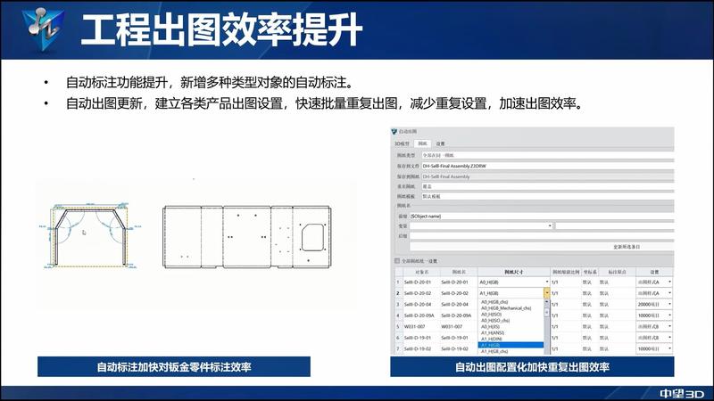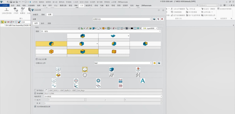 二、自动出图成套配置化更智能 对于设计规模大且复杂的产品,高效的自动出图能缩短项目周期,为客户提供更流畅的出图体验。中望3D2026重新调整自动出图模块,支撑出图设置的成套配置化,方便重复使用。