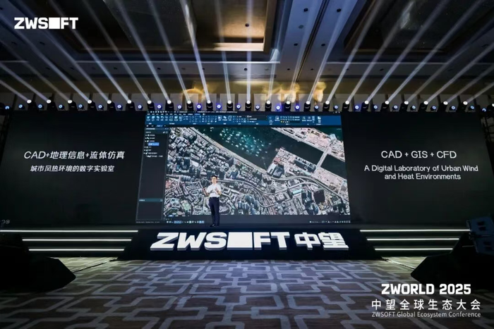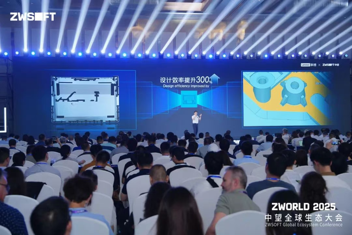 随后,杜玉林董事长代表公司面向全球伙伴正式发布中望新LOGO。“新LOGO不仅是一次视觉进化,更是对中望战略、品牌定位的全新升级!成立27年,中望站在一个新起点上,重新再出发。这是一种态度,一种决心。”杜玉林介绍,新LOGO创意性地将“ZWSOFT”中的字母“O”替换为蓝色方块,寓意“数字之窗”,象征着公司以工业级稳定性为基础,推动数字技术与物理世界深度融合的全新使命。“新标识中的蓝色方块,象征着中望构建的数字孪生桥梁。我们正通过自主核心技术,实现数字世界与物理世界的深度耦合,构建可持续的创新闭环。” 副总经理林庆忠分享了中望在行业解决方案方面的创新成果:“我们深入客户一线,基于真实场景与需求,共同打造了中望CAD+AI、云协同、点云处理、离散元及流体仿真等一系列针对性解决方案,有效破解了多个行业的实际痛点。中望始终以CAD作为连接数字与现实的核心接口,持续为千行百业的创新实践提供坚实支撑。”