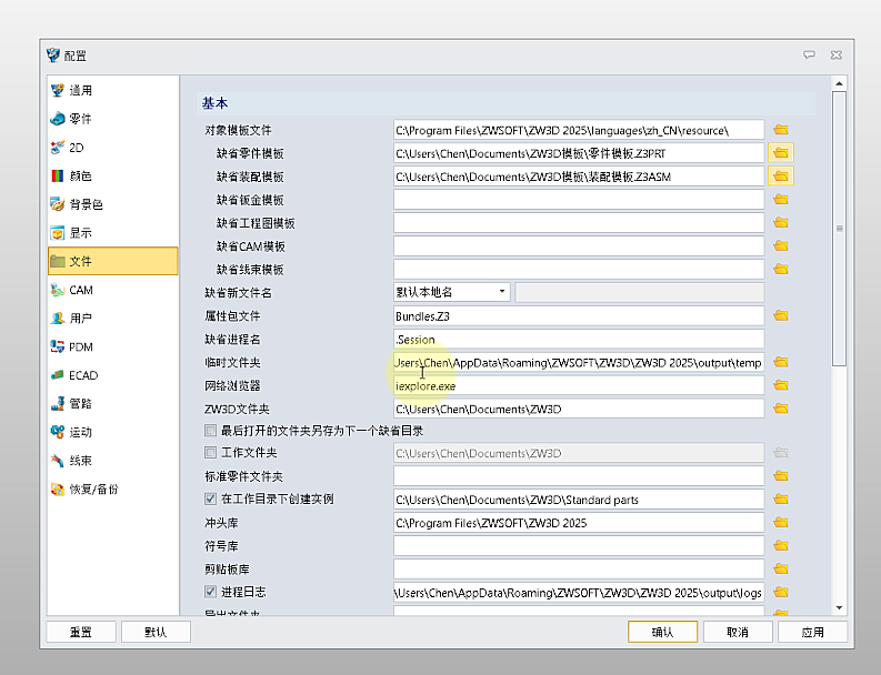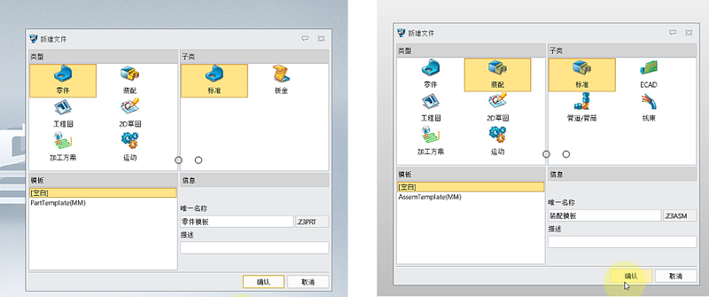 ② 点击物理属性页中的【设置】,在【界面属性设置】中取消勾选【包括装配下的造型】、【包括隐藏造型/组件】前的复选框,勾选【实时更新数据】,点击【确认】、【应用】和【确定】。 ③ 重新回到物理属性页,这时【质量】为【1501.66】kg,质量自动变成不计入实体造型和隐藏组件的结果。 三、中望3D 2026和2025操作区别 基于上述这些中望3D 2026中新增的质量计算选项,当模型发生修改时,中望3D 2026能够实时更新质量数据,无需手动干预,有效避免因遗忘更新操作导致的数值错误,确保模型质量数值始终与设计变更保持同步,用户能轻松实现模型质量的自动计算,大幅提升设计效率与准确性。 而在中望3D 2025及以下的版本中,需要通过下方操作来保障质量计算正确: 1. 通过模板可以高效复用修改模型时快速更新质量的功能 ① 准备好零件和装配模板,注意在创建模板时对应的物理属性页中勾选【保存数据时更新】; ② 分别指定新建的模板文件为默认的零件和装配模板;